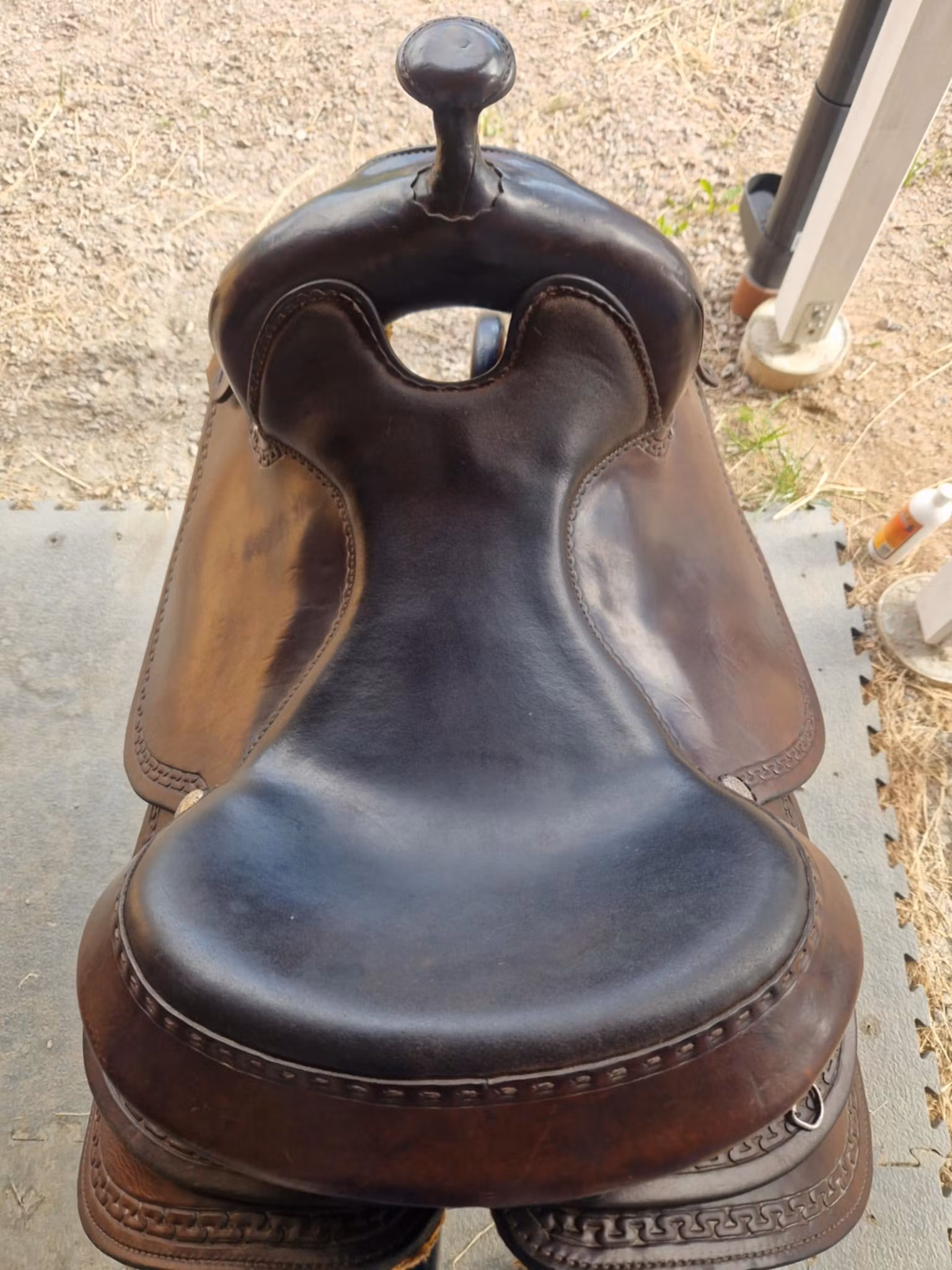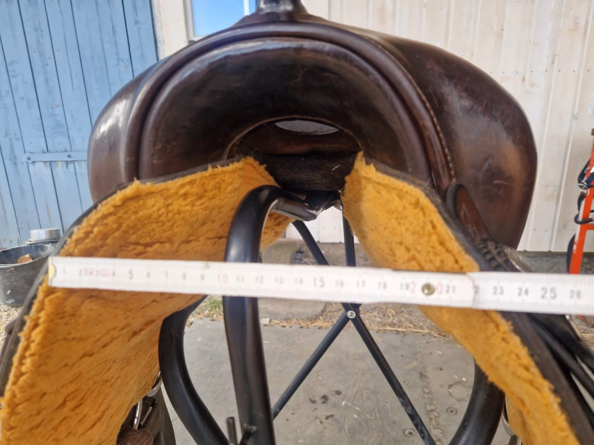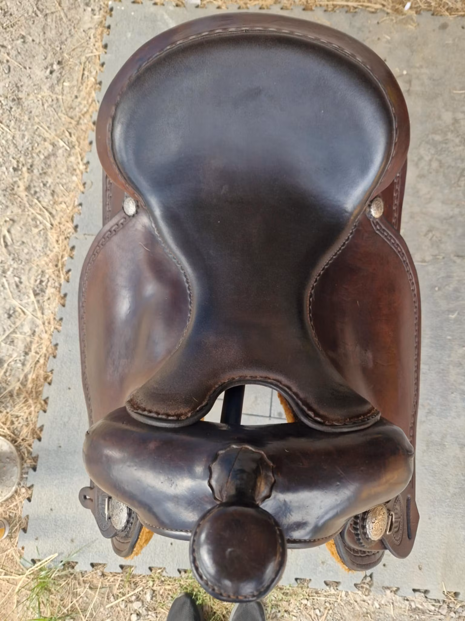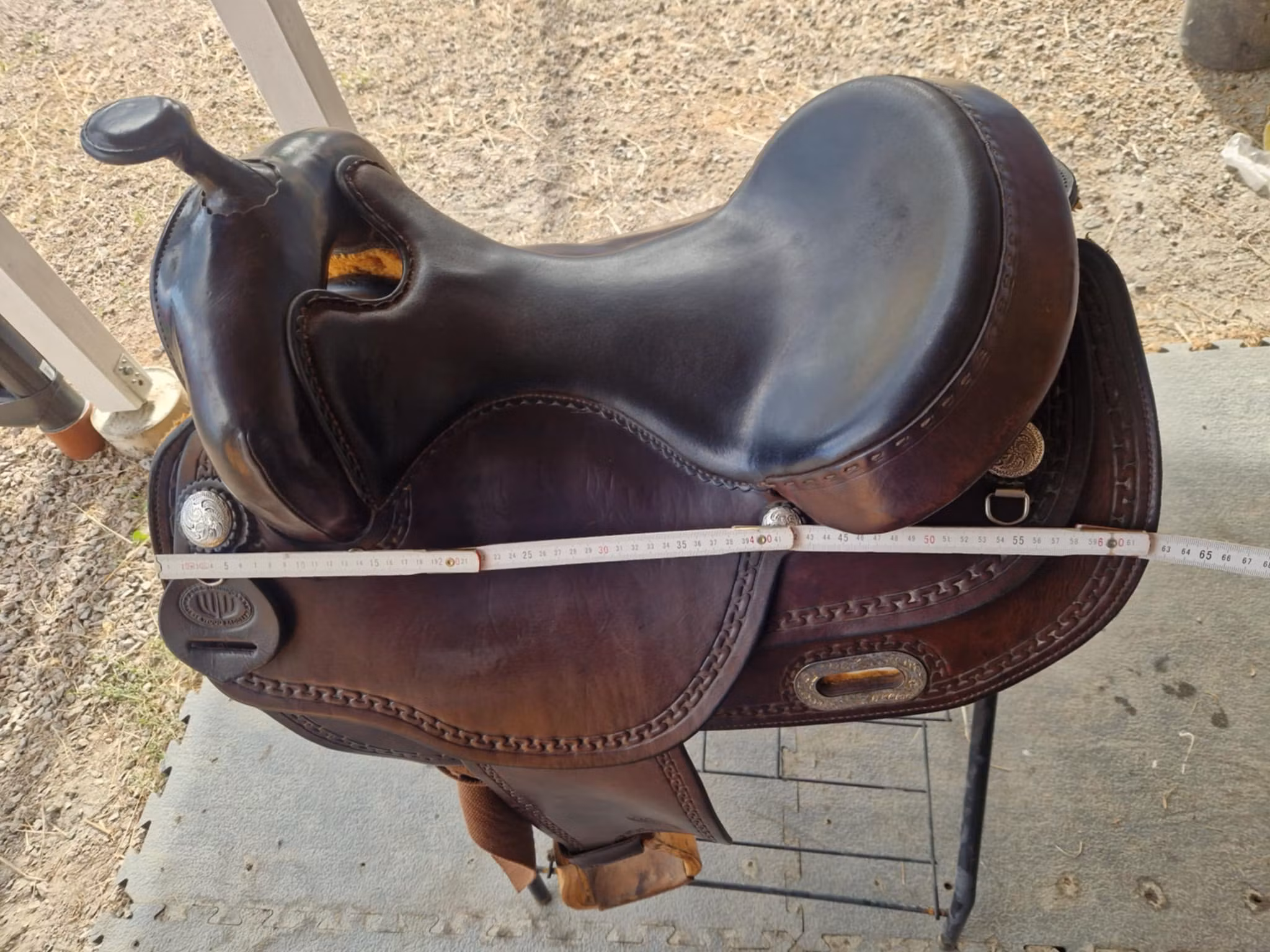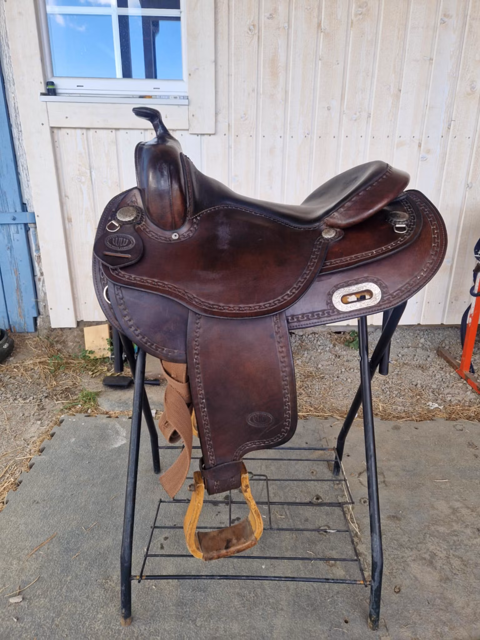 lätt begagnad snygg och bekväm allround westwood XFQ westernsadel mörkbrun med dubbelrigging som ligger bra på riktig breda hästar med lite sväng i ryggen och ingen hög manke. Sadeln är i jättebra skick, den har bruskspår men inget som påverkar användingen. Sitsen är 16 tum mjukpaddad, och hela sadeln är 62 cm kort.