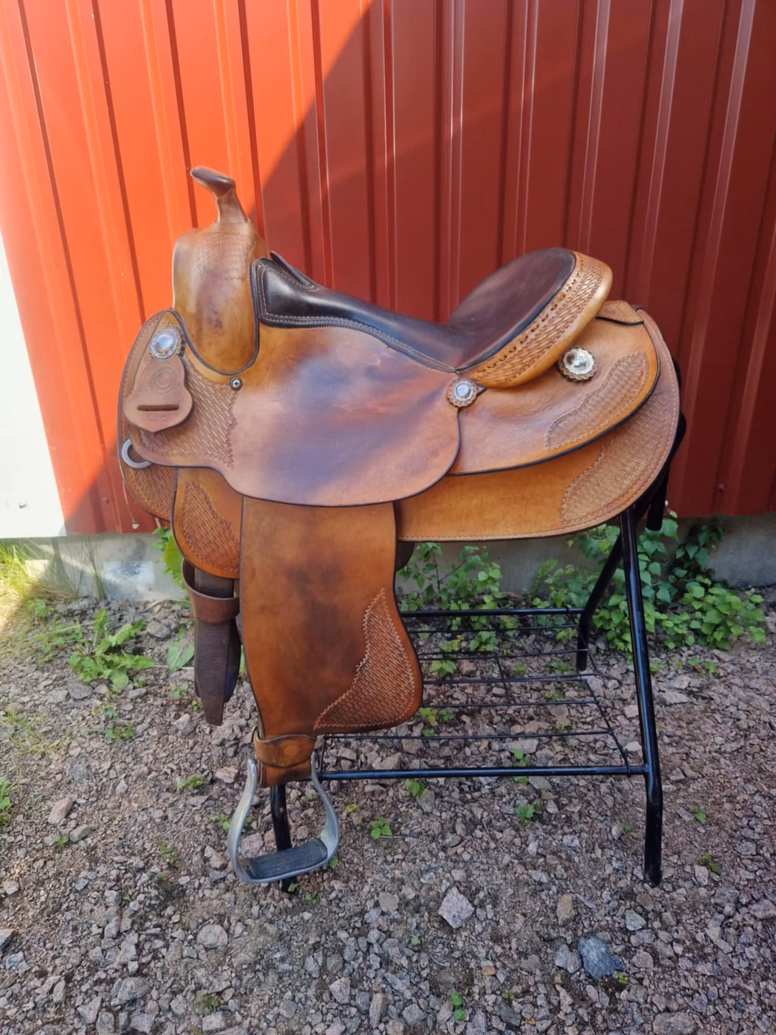 begagnad, välanvänd o bekväm Continental 170 med Full Quarter (FQ) bom , 16 tum sits, dubbelrigging . Sadeln har bruksspår, men inga som påverkar användningen.