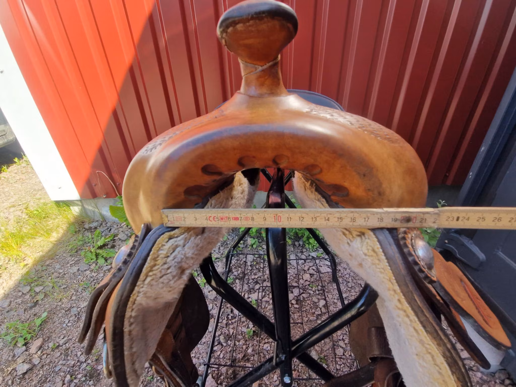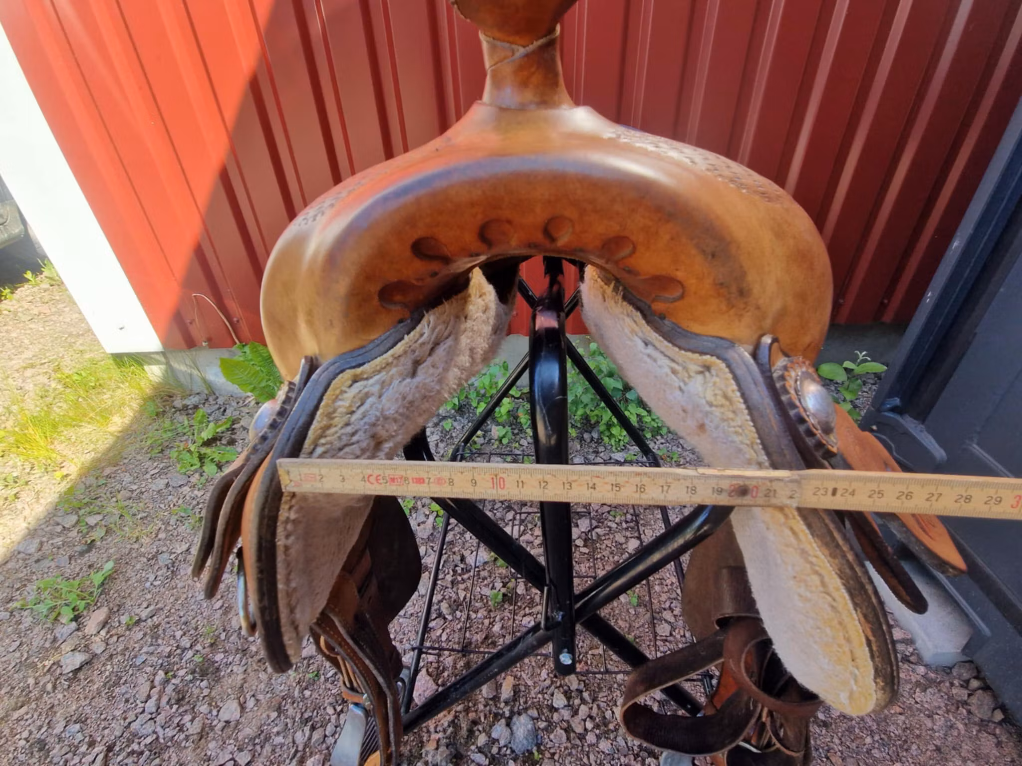 Hela sadel är ca. 67 cm lång och väger ca 12 kg.