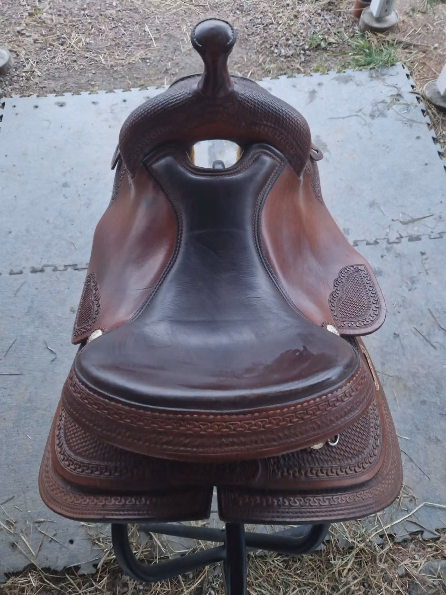 Unik tillfälle: Begagnad jättefin Circle L Topline sadel 2207 med 7 tum gullet och Q bom, 16 tum mjuk paddad sits, bra för dig som vill ha en bekväm sadel.