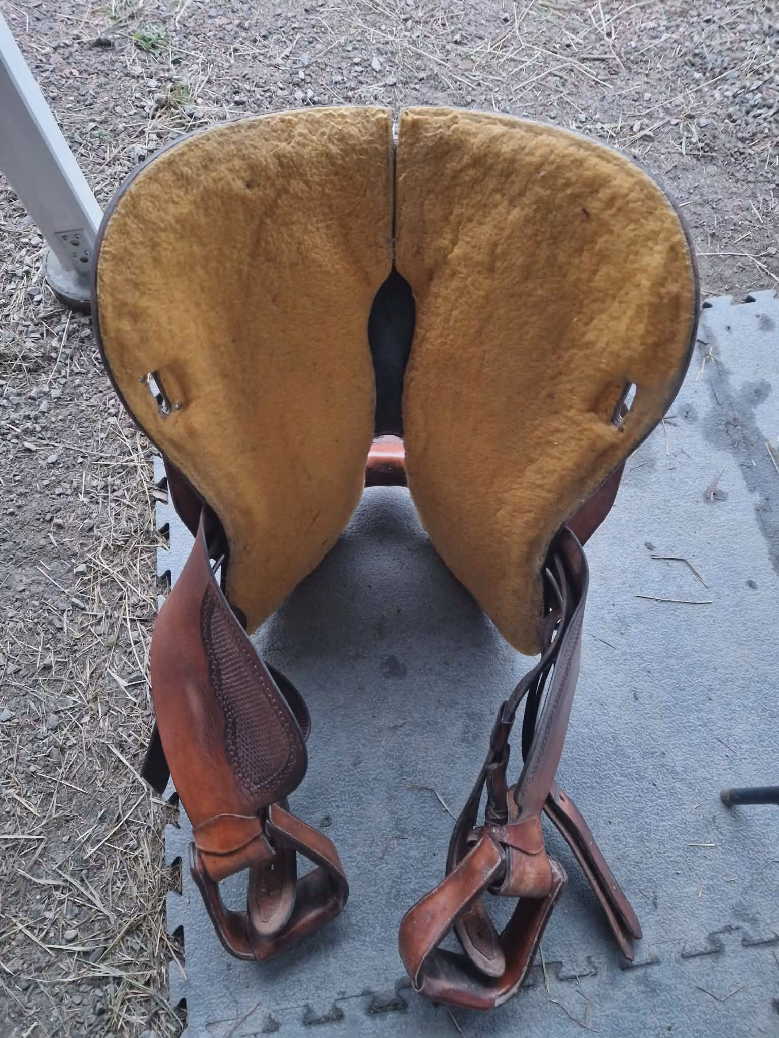 Sadeln är i jättebra skick, den ligger bäst på medium bredda hästar med lite sväng i ryggen, sadel är 65 cm lång, Fenderna är twistade, det avlastar kne vid ridning.