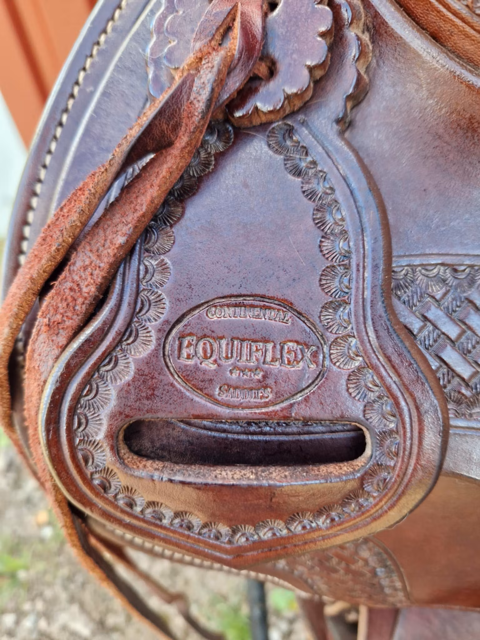En snygg sällsynt lättbegagnad Equiflex 186 XXL allround/trail med mjukpaddad 16 tum sits, hela sadel är ca. 62 cm lång.