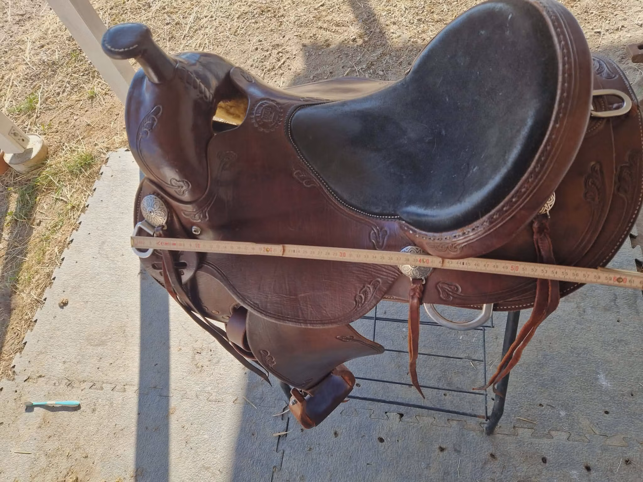 - Cantle: Height 4",Width 13", Dish 1 ½". Style 1 ½" Cheyenne Roll. Hand Sewn.