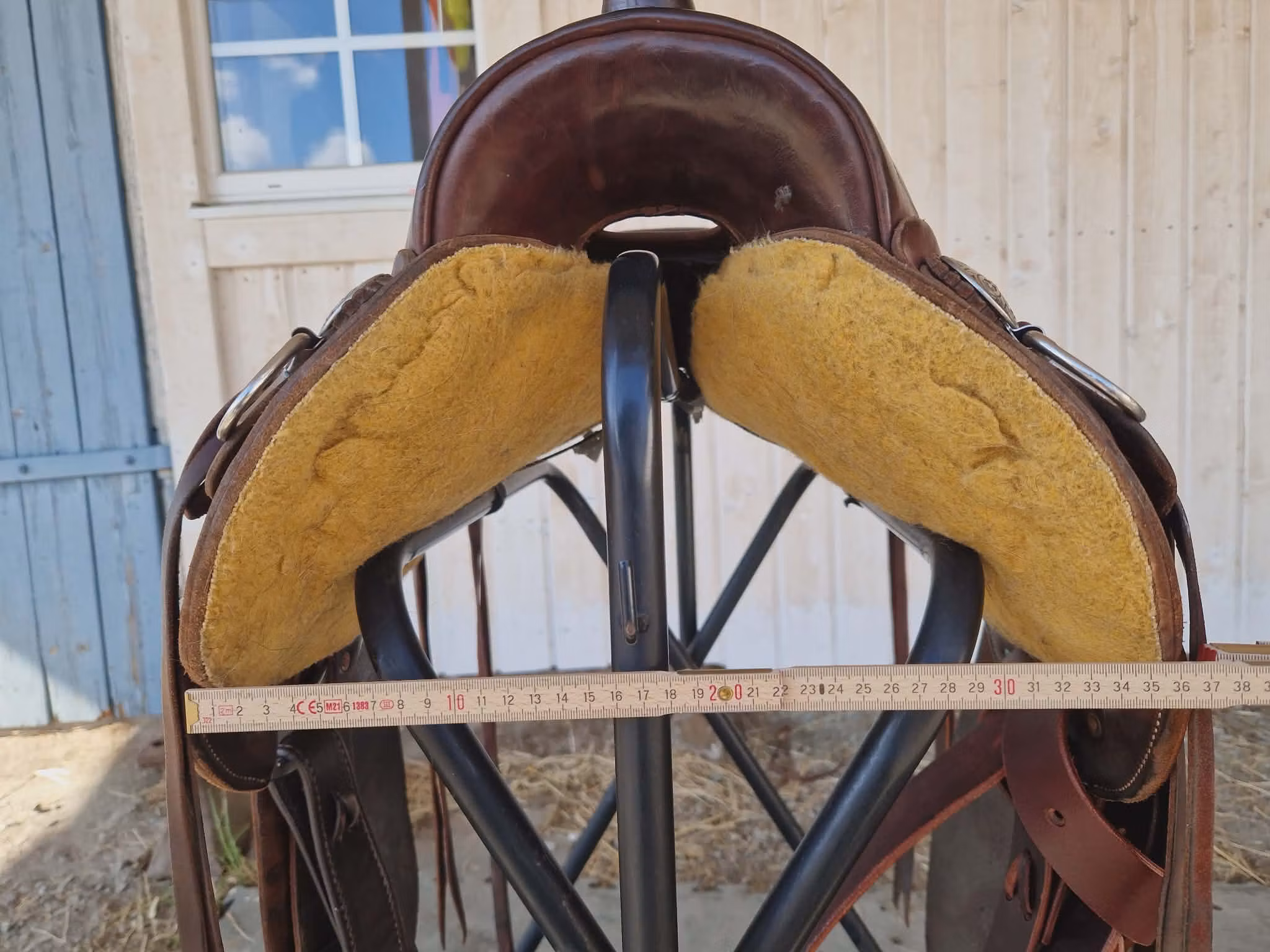 Unik tillfälle: begagnad snygg R.W. Bowman B-Light Trail saddle FQ träbom 16 tum inlaysits. Med nya stigbyglar och off-bilett och tiestrapsen är också byttat inte länge sen.