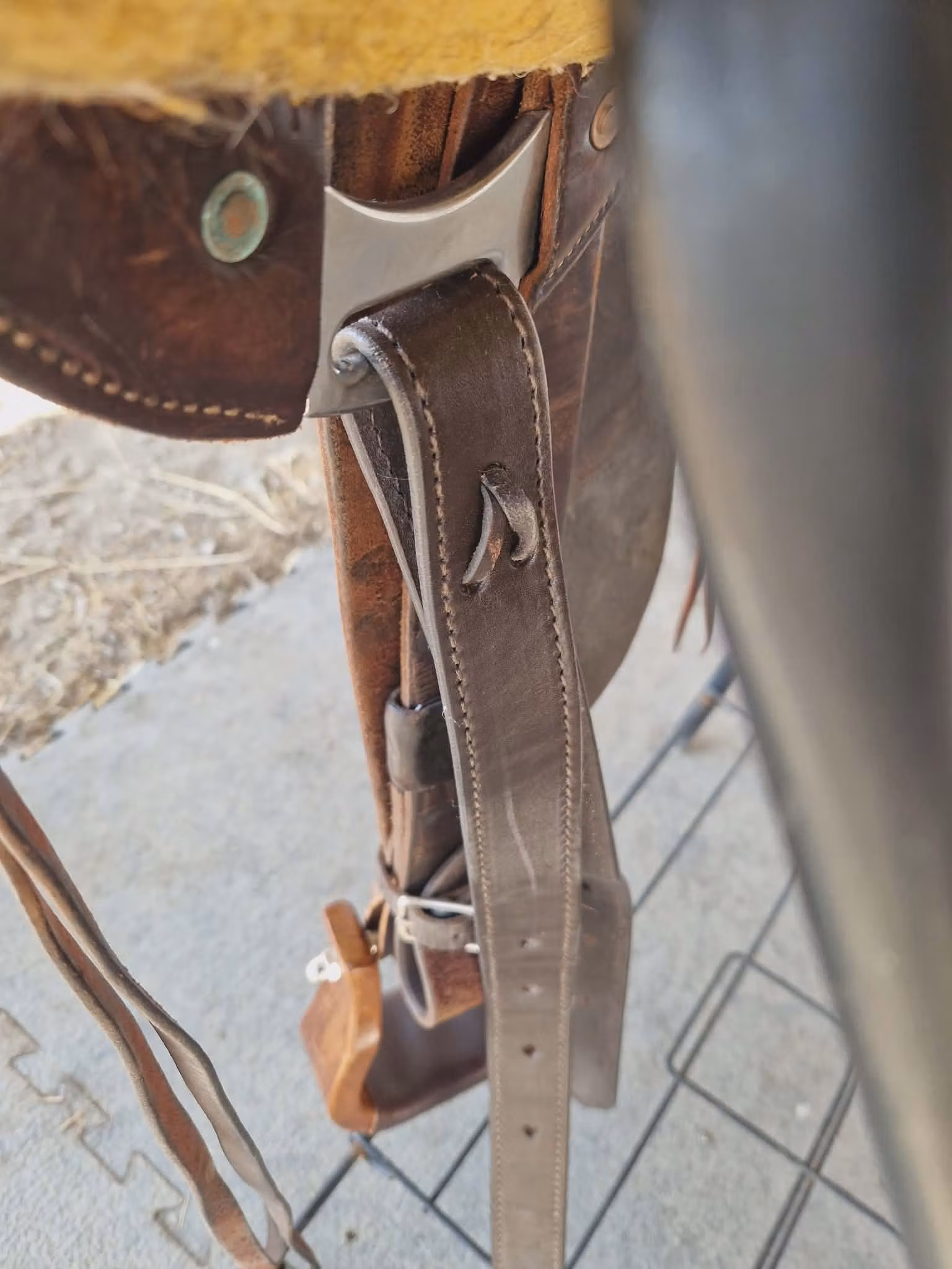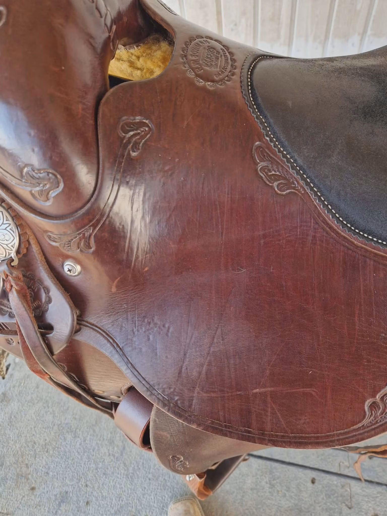 - Stirrup Leathers: 2 ½" with Leather Covered Blevins Buckles. Machine sewn and copper riveted at the Blevins Buckles and the top of the fenders