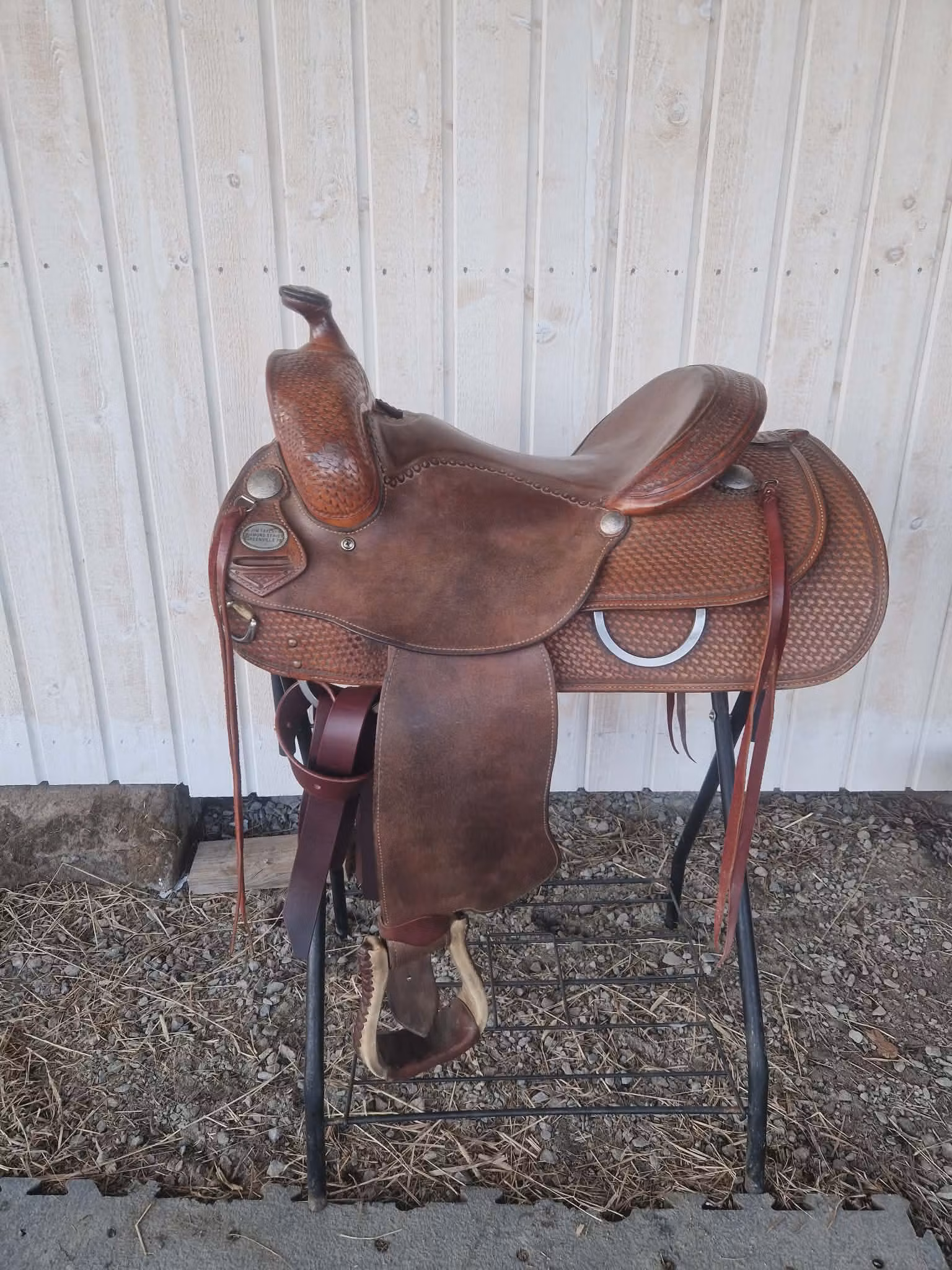 begagnad snygg custom made Jim Taylor Reining/Allround med SQ bom och rymlig 15 tum säte samt D-rigging. Sadeln har rough out skirts och fender. Nytt tiestrap och ny off-billet.