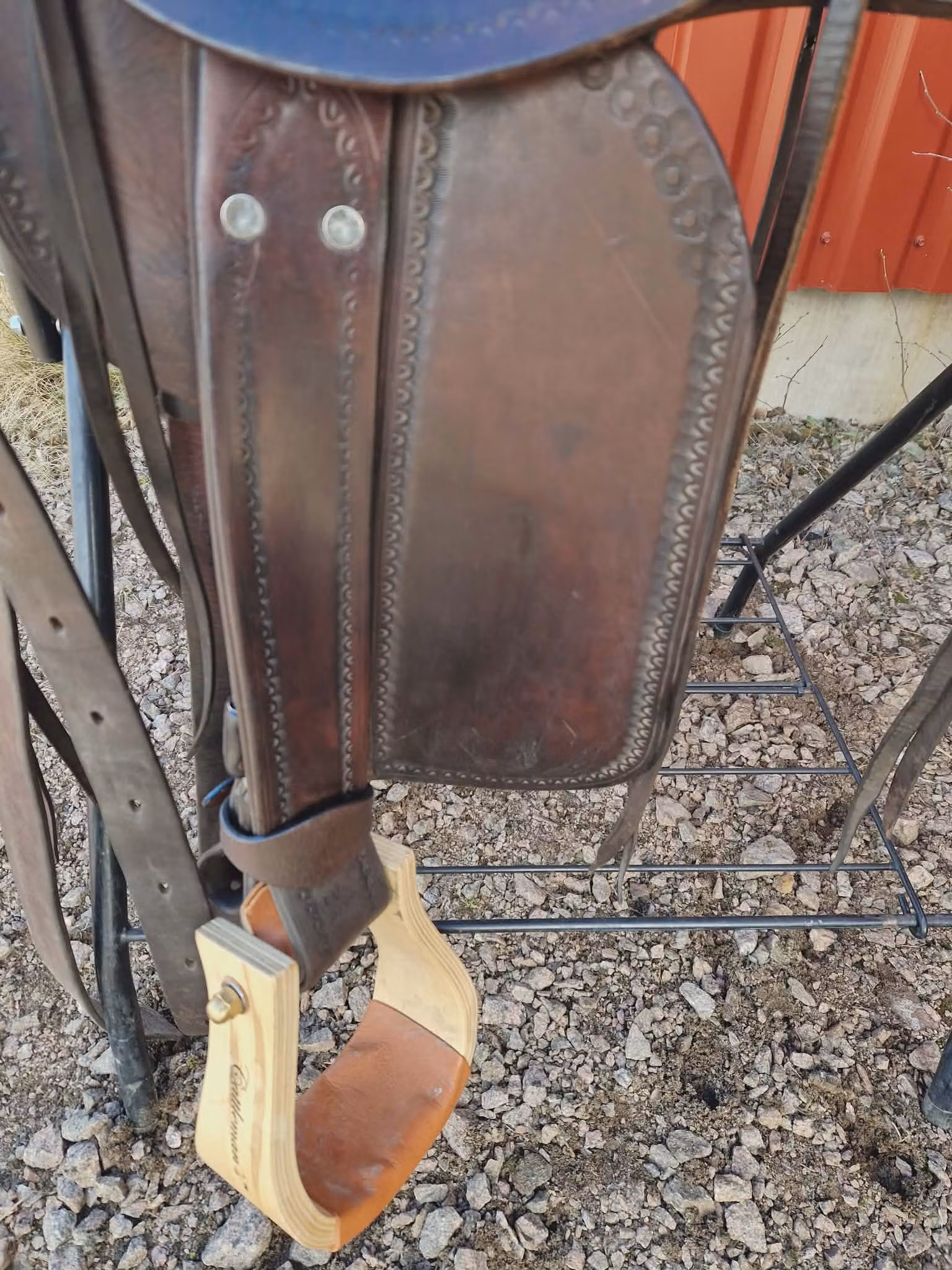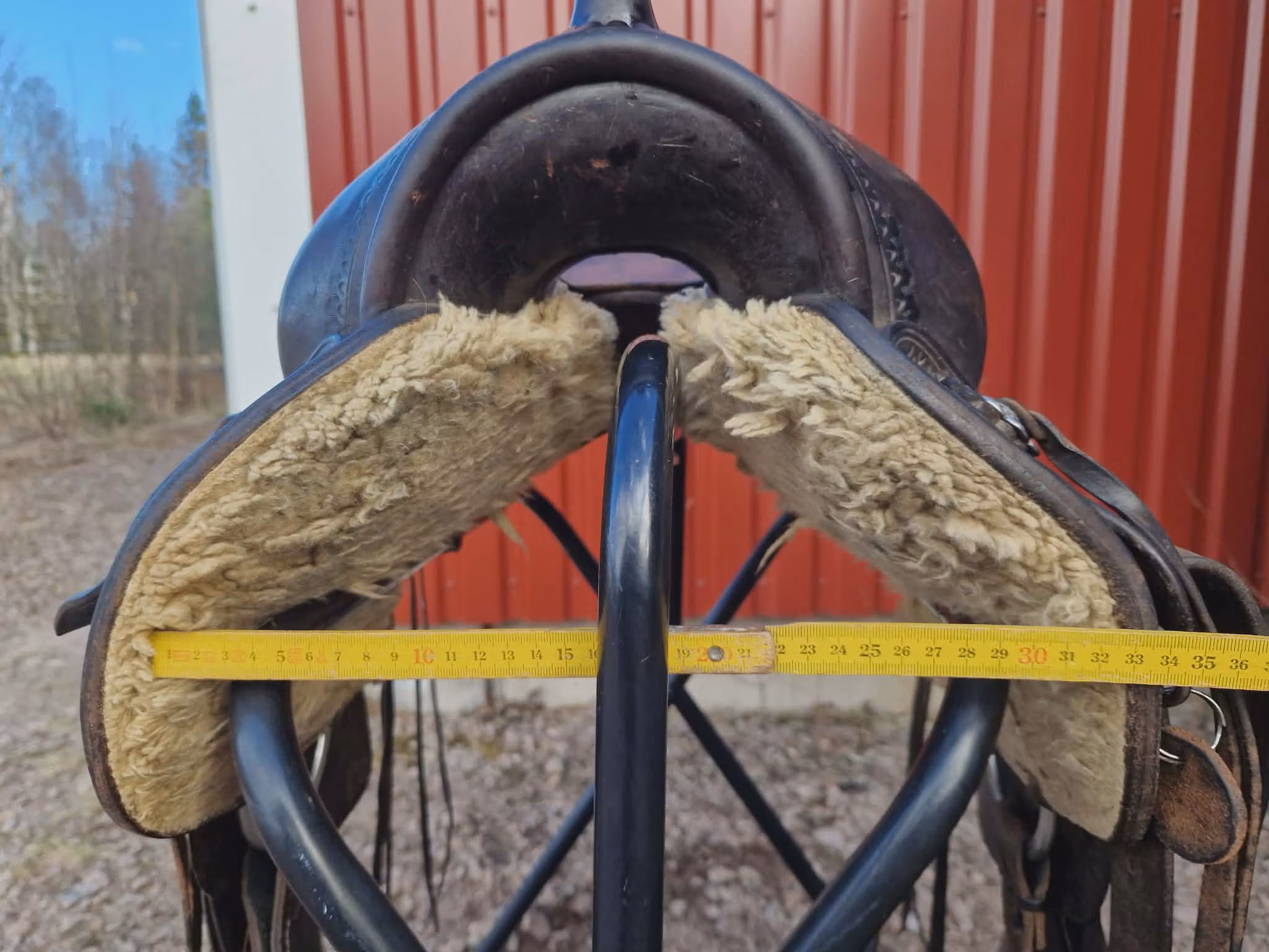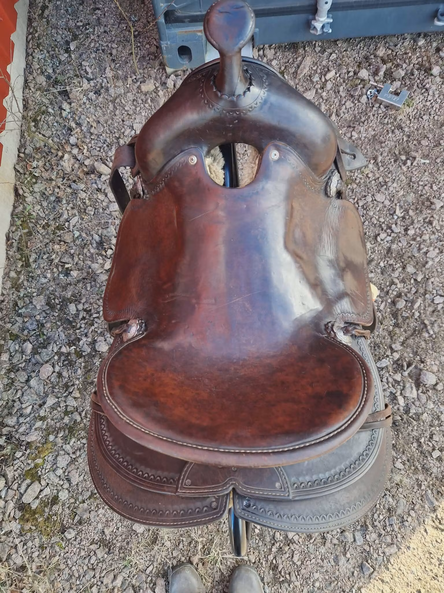 Kvalitäts custom made westernsadel från RIESER SADDLERY Tyskland, en unik och snygg Oldtime /Allround sadel med SQ bom som passar på många hästar som är smala, max. medium bredd , lite takformad i fram (eller hög manke) med ganska rak rygg (som fullblod, travare eller arab o.s.v). Sadel har en dypp bekväm hårdsits som är 15,5 tum i storlek. Men nästan nya trässtigbyglar.