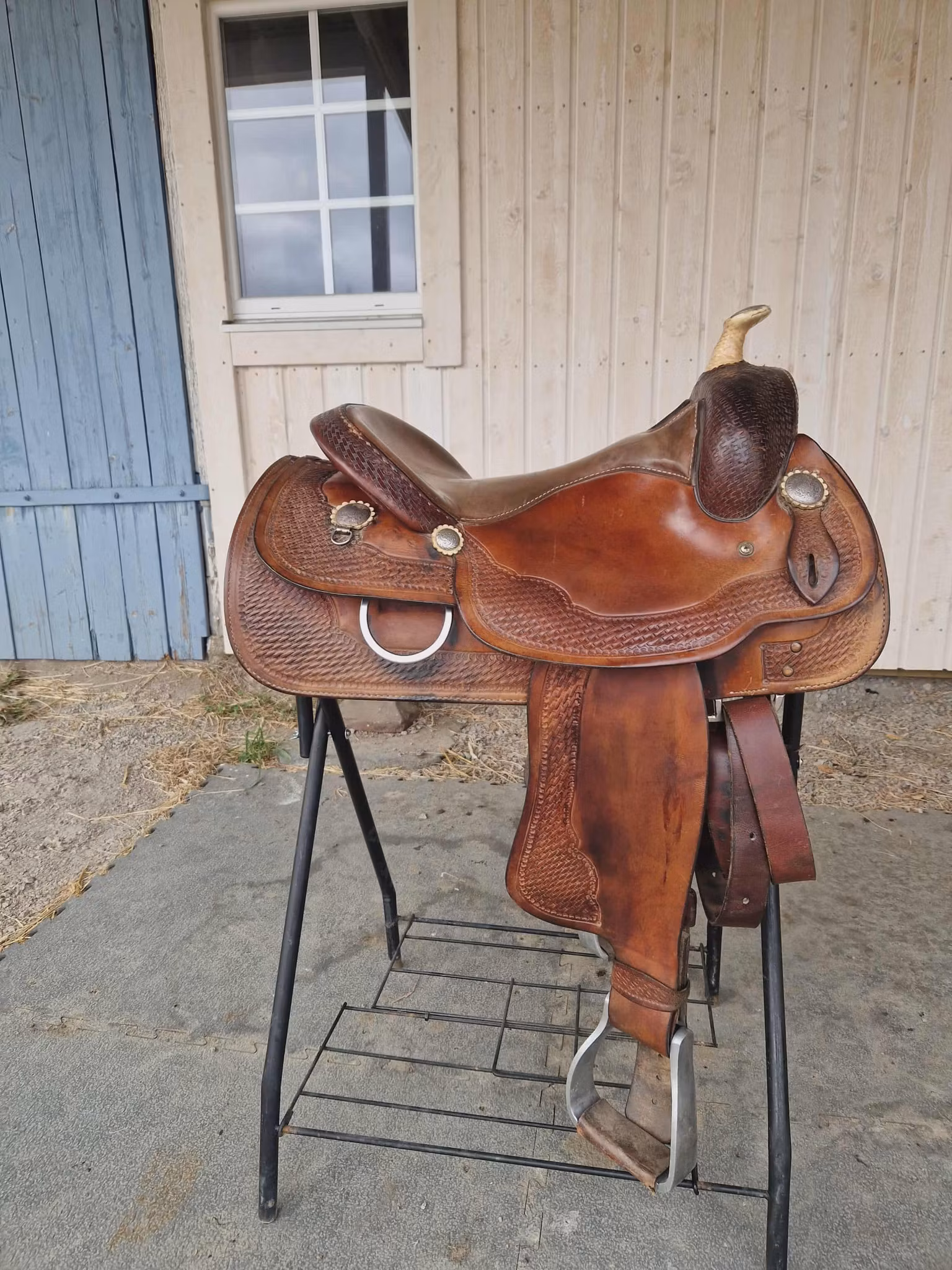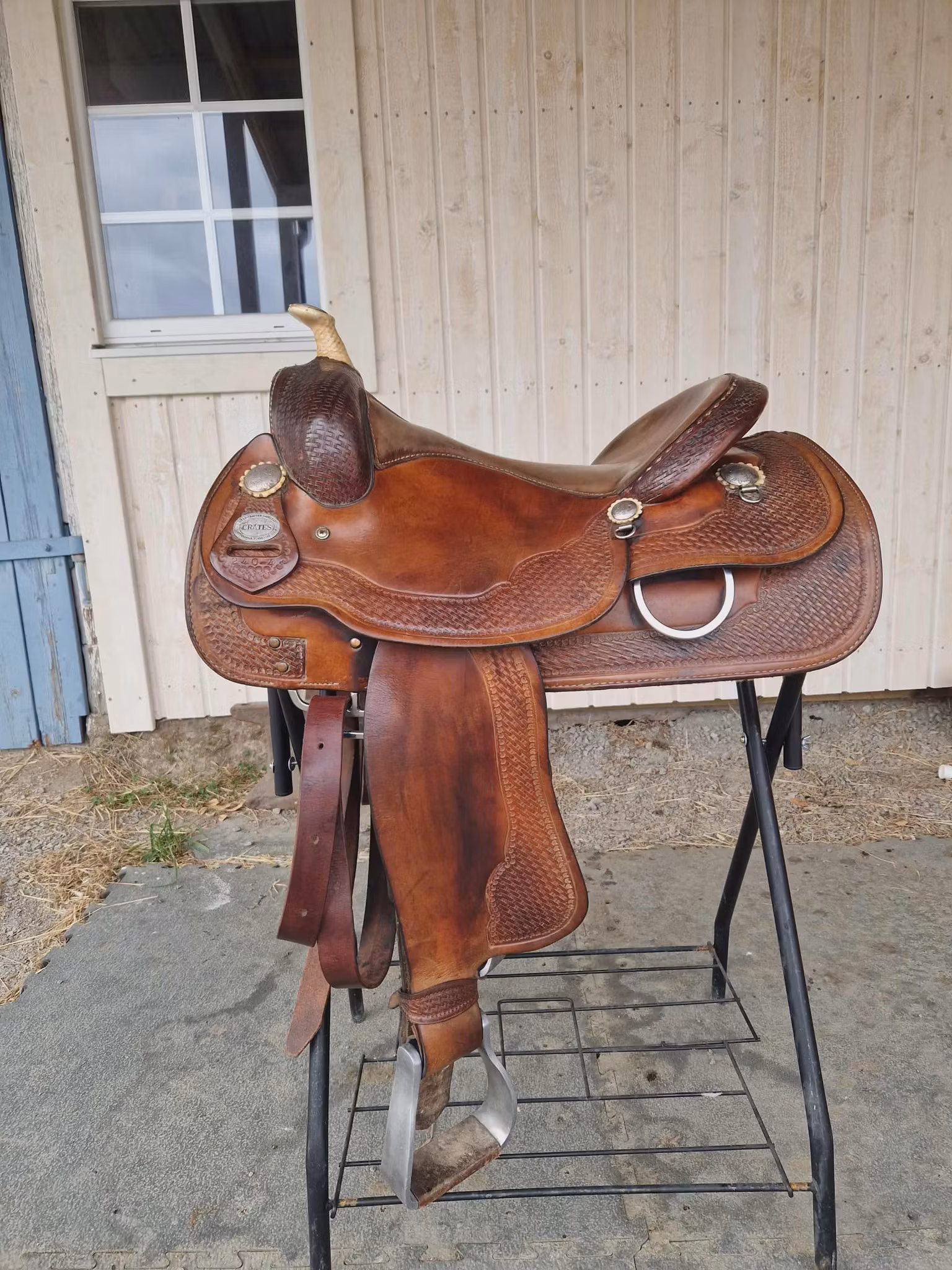 begagnad Crates reining/allroundsadel 240, equi-fit QH bom, 16 tum sits och dubble rigging.