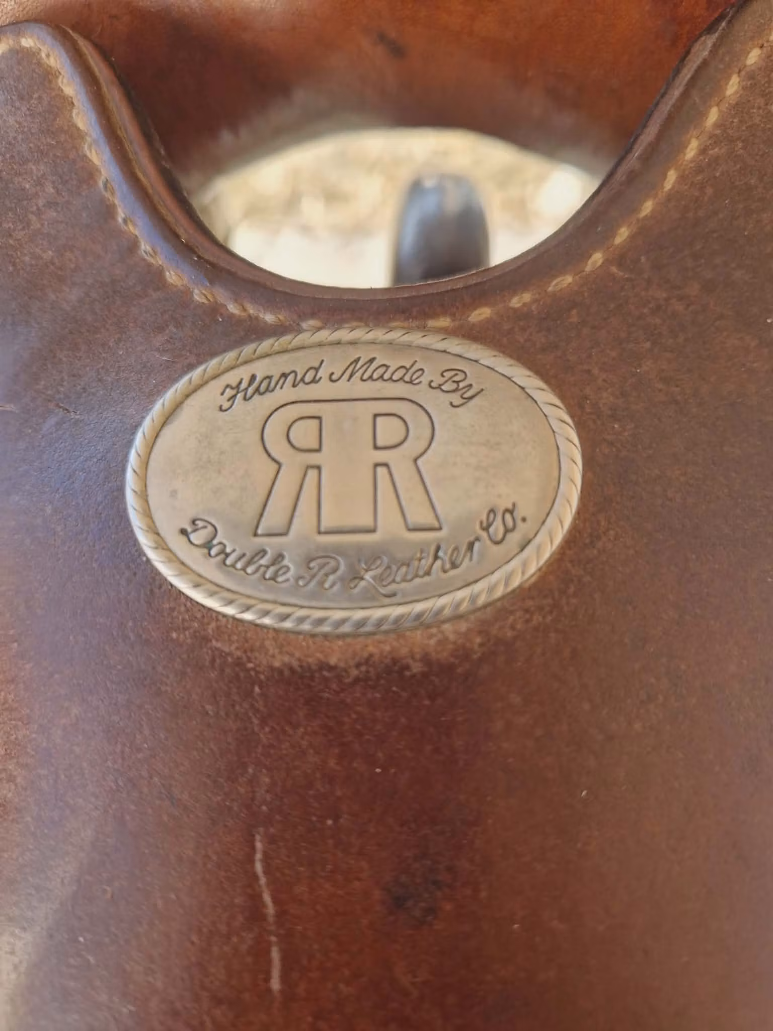 Begagnand mycket använt custom made sadel från double R leather company med träbom QH för smalare max. medium bredd typ av häst med normal manke och ganska rak rygg, sadeln har en 16 tum sits , det är en riktig bra ranch oldtimersadel för att rida flera timmar i skogen, rida en pass på ridbana eller fösa koar....